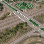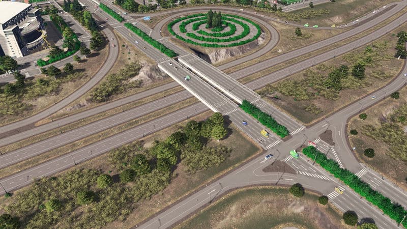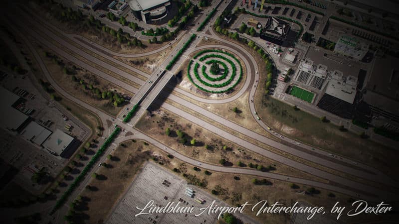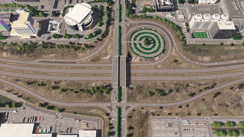 A nice design highlight in this interchange are the circle roads in the loop ramp.