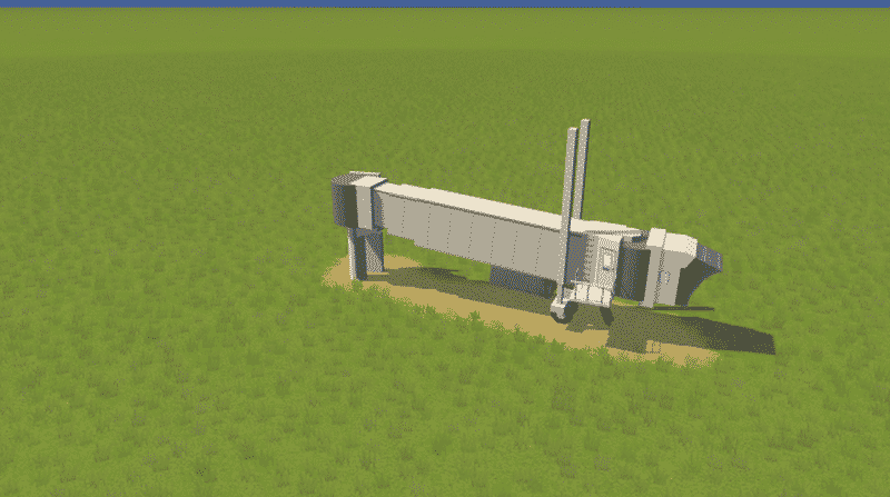 This is building composed of jet bridge props that will fit a 737 plane asset. This jet bridge originates above the ground floor in a terminal building.