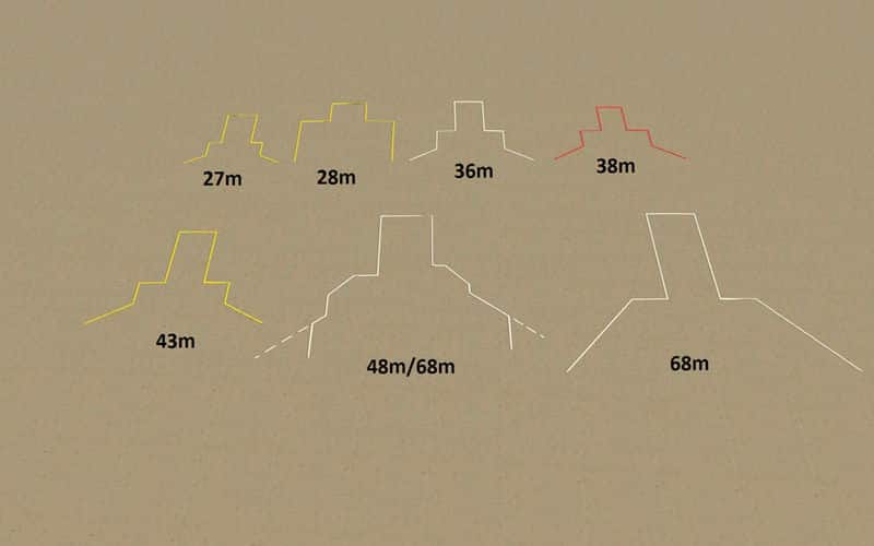 Each plane stand is listed with the aircraft wingspan it can accomodate.