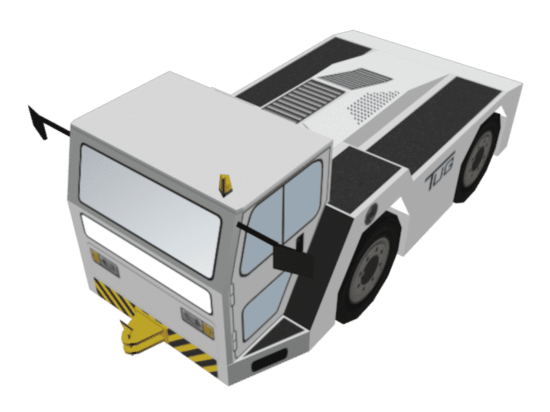 A pushback tractor for an airport. This kind of pushback is used in conjunction with an aircraft towbar to push an airplane out of a plane stand (they can also be used to tow aircraft using a towbar). This model contains 450 Tris with a 256×256 texture and an LOD model with 90 Tris and a 32×32 texture.