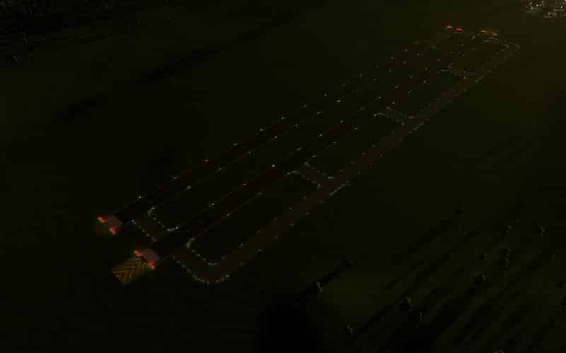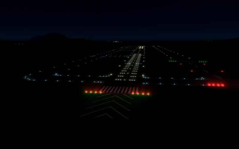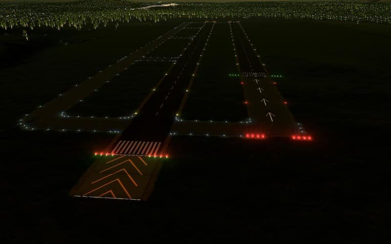 - HighIntensityLightSingle_G (green) – these are uni-directional and denote the start of a runway. Typically found in clusters of 4 in a row with a spacing of 3 meters. These are ALWAYS placed at the threshold, and not at the start of the pavement.