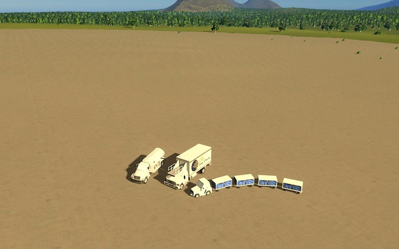 The idea is that you place actual roads (mostly concrete roads from the network extensions mod), and can setup “bus lines” for the service vehicles. Since the vehicles are not actually picking up passengers, you could have as few as 2 stops. Then use the Improved Public Transport mod to select only the service vehicles that you want to appear on the line.