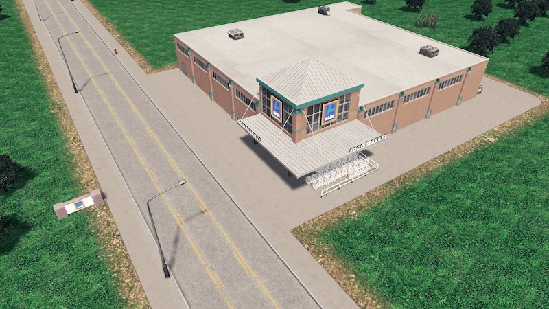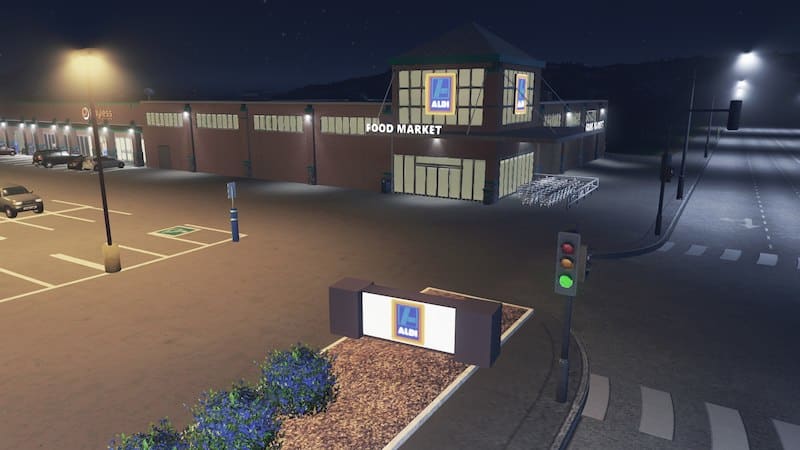 Includes sign prop. Found in the Billboards tab when using More Beautification mod. If you have a search mod just search “Riverpark.”