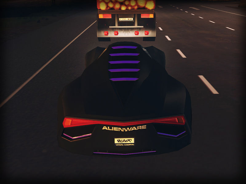 Alien, Alienware, Car, Sport, vehicle, cool, sporty, dark, black, contest, shape, horizon, color, dark, neon, nightlife, rich, red, green, purple, turquoise, computer, hardware, case, mod, steam machine, identity, logo, silhouette, nighttime.