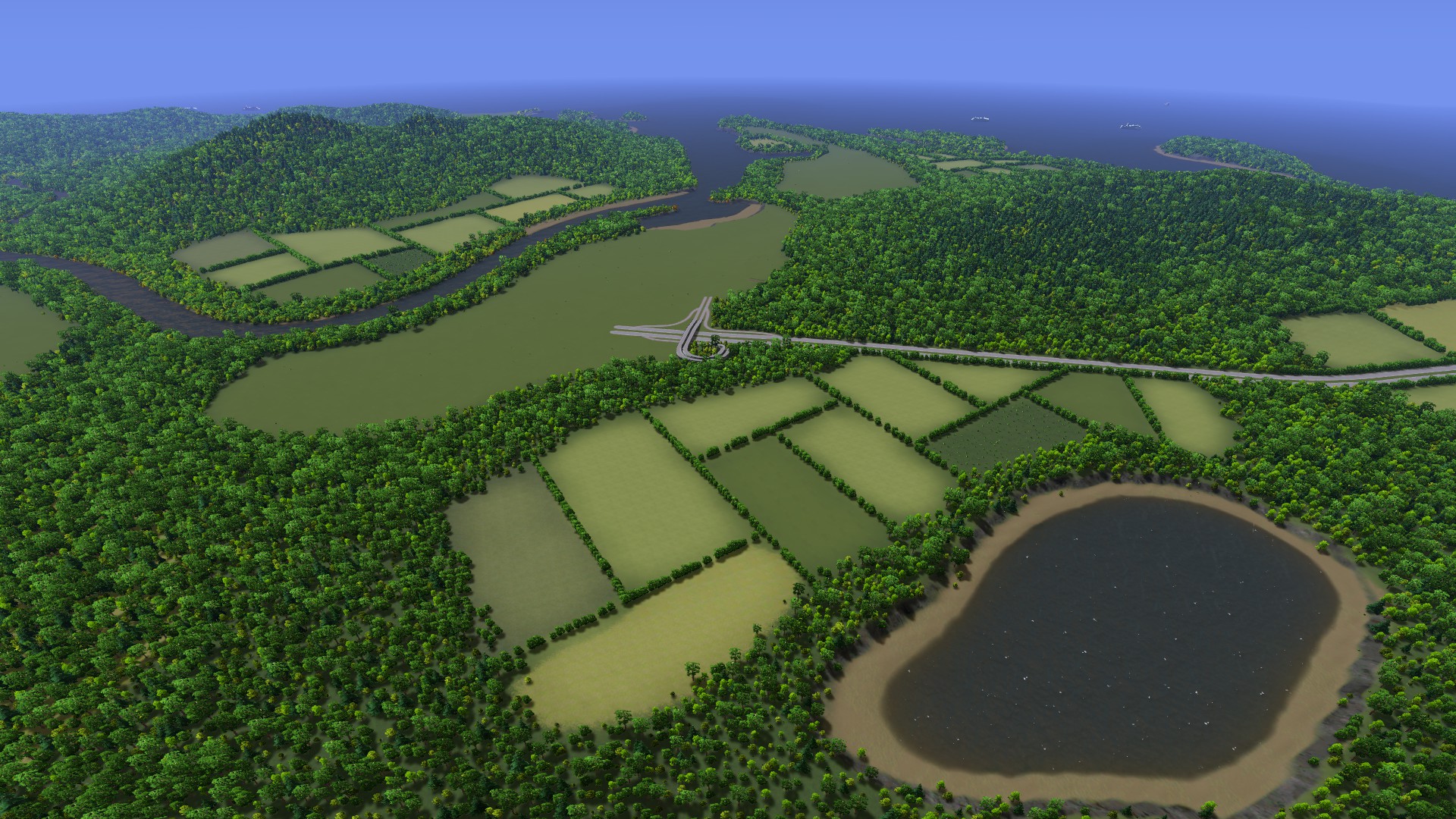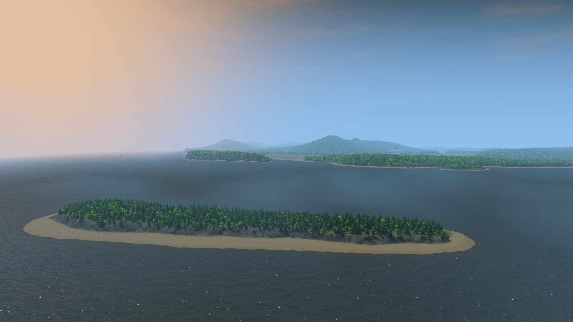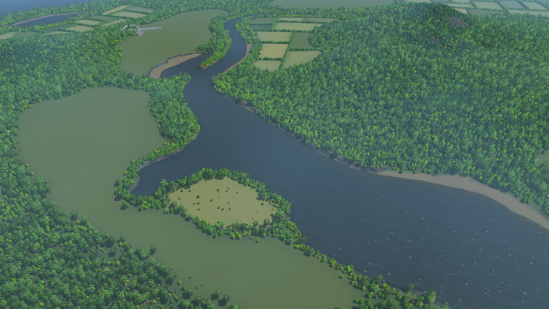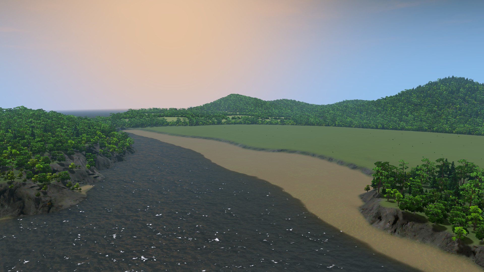 There is just one highway and one railway. I’ve intentionally tried to keep it as simple as possible, leaving the main infrastructure design up to the player. I did place an intersection in the starting tile, to make expension of your highway a bit easier. There are shiproutes along the coast, every coastal spot should be able to connect to these routes. The river has a ship connection at the bay, up to the small sandy bay.