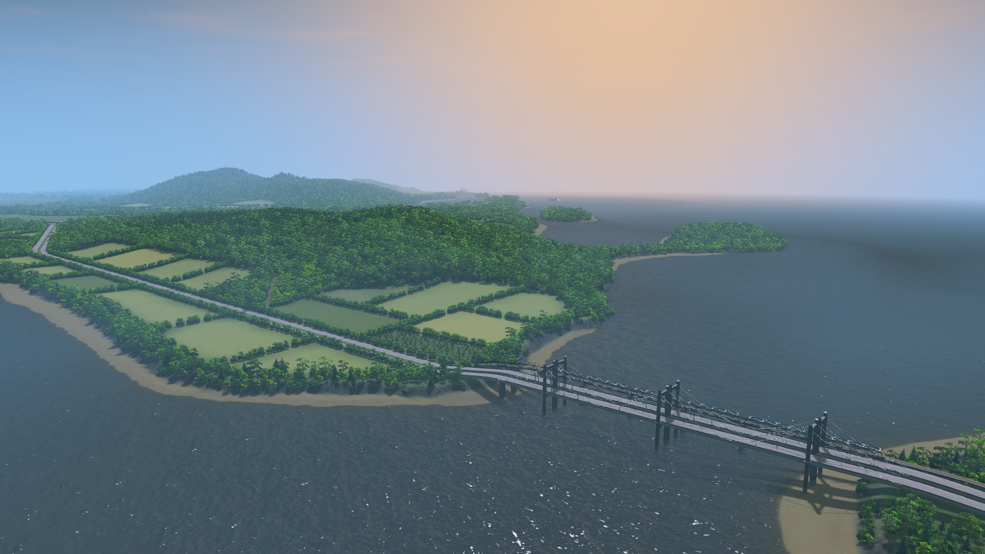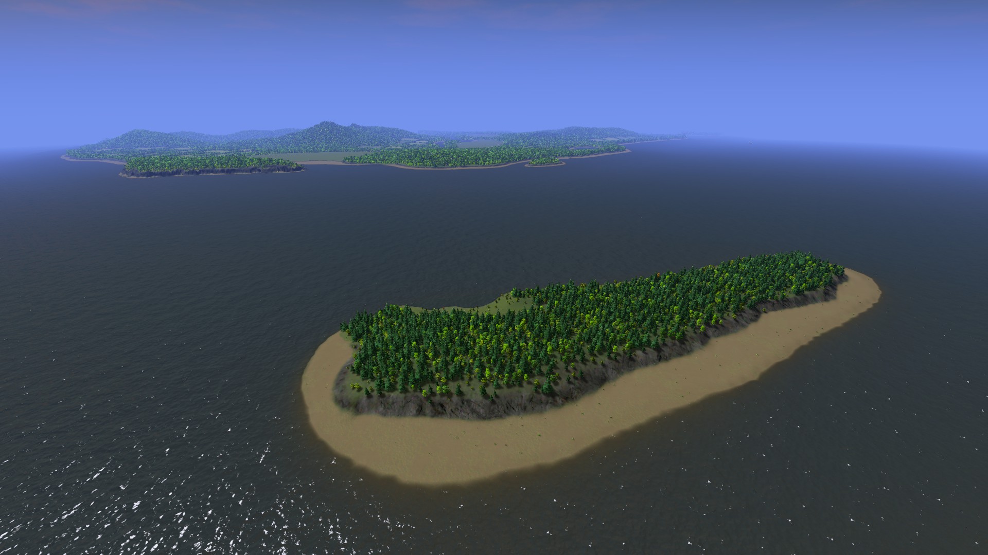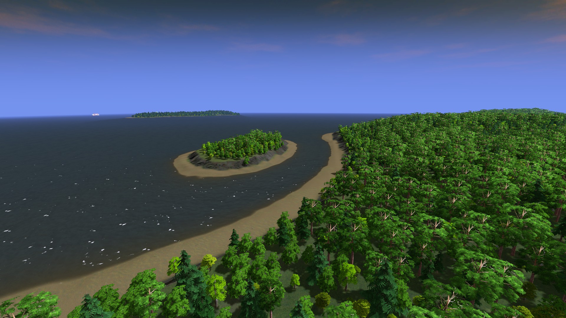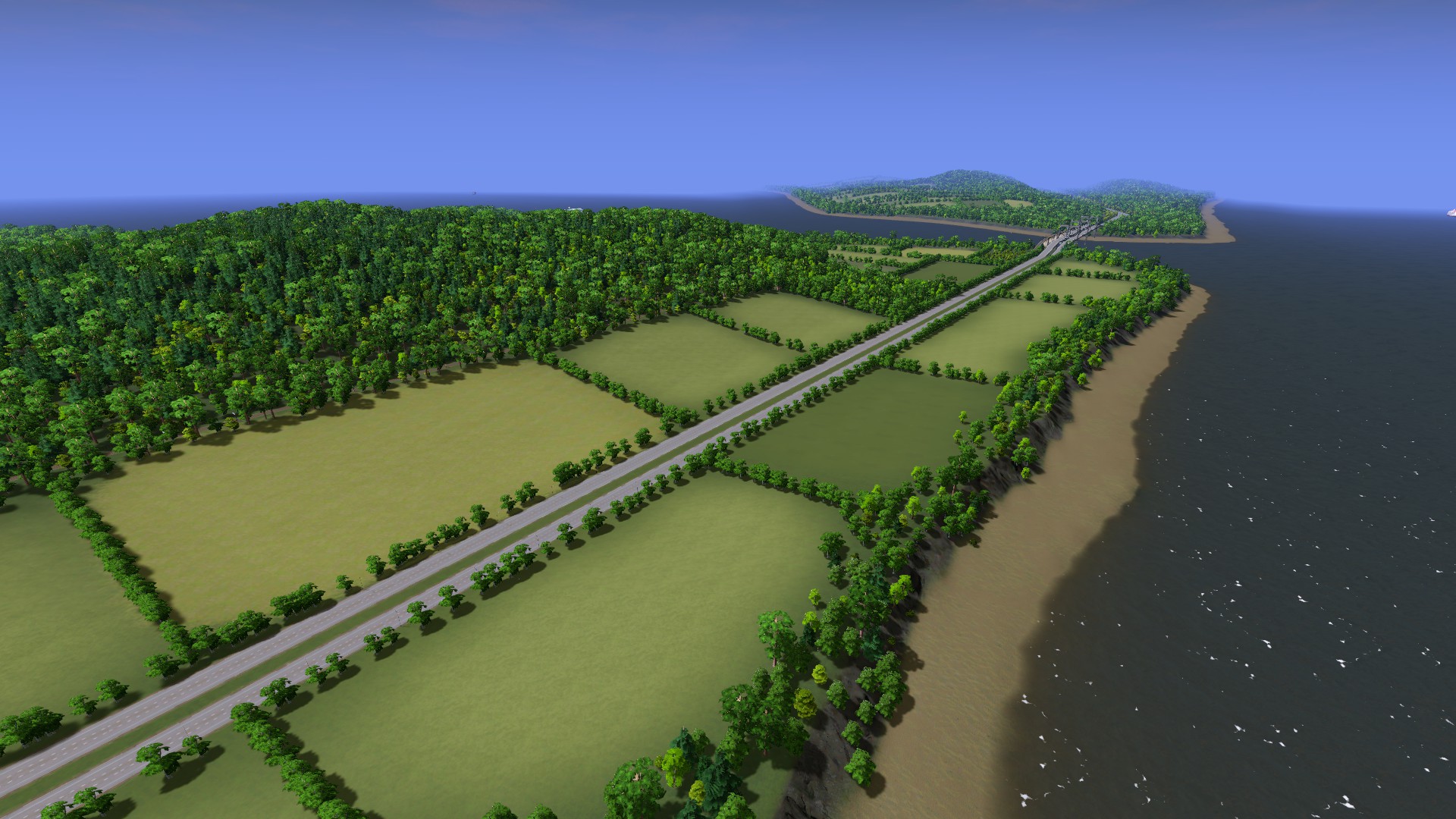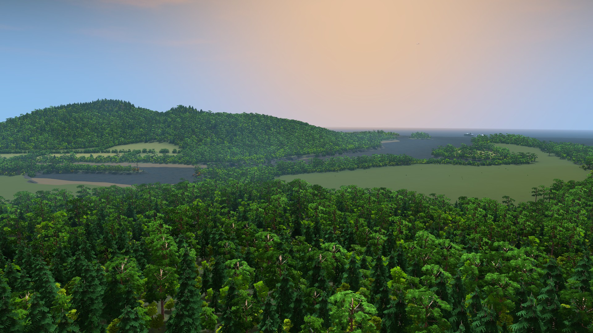There is just one highway and one railway. I’ve intentionally tried to keep it as simple as possible, leaving the main infrastructure design up to the player. I did place an intersection in the starting tile, to make expension of your highway a bit easier. There are shiproutes along the coast, every coastal spot should be able to connect to these routes. The river has a ship connection at the bay, up to the small sandy bay.