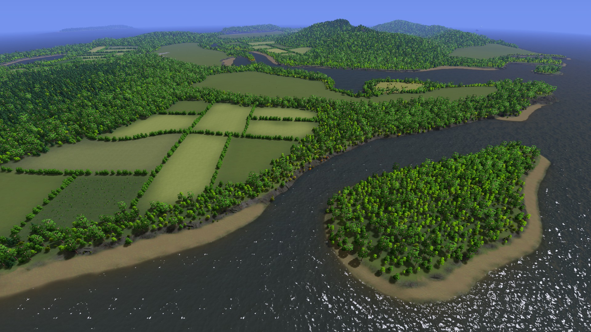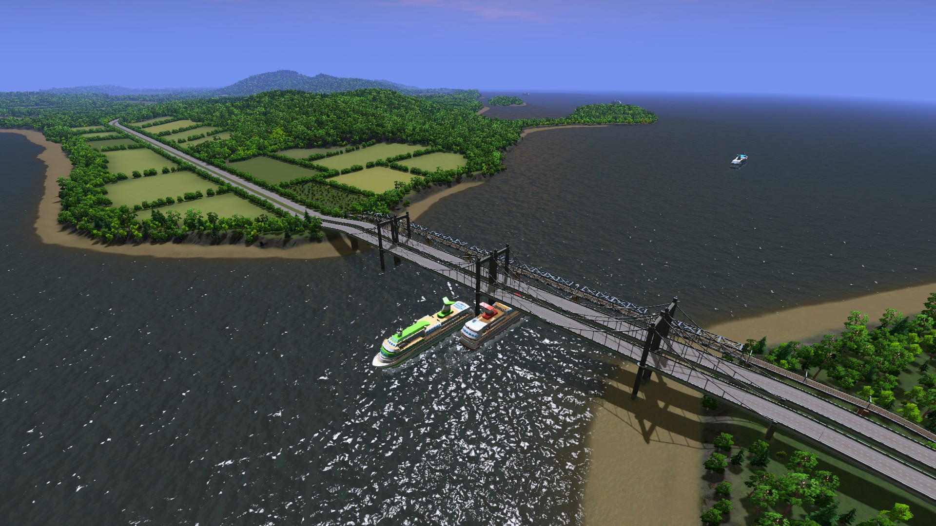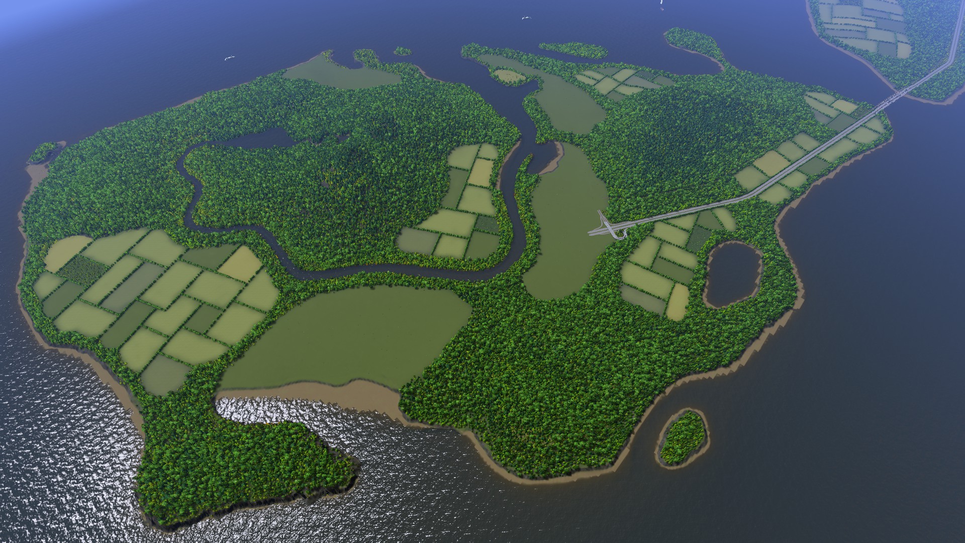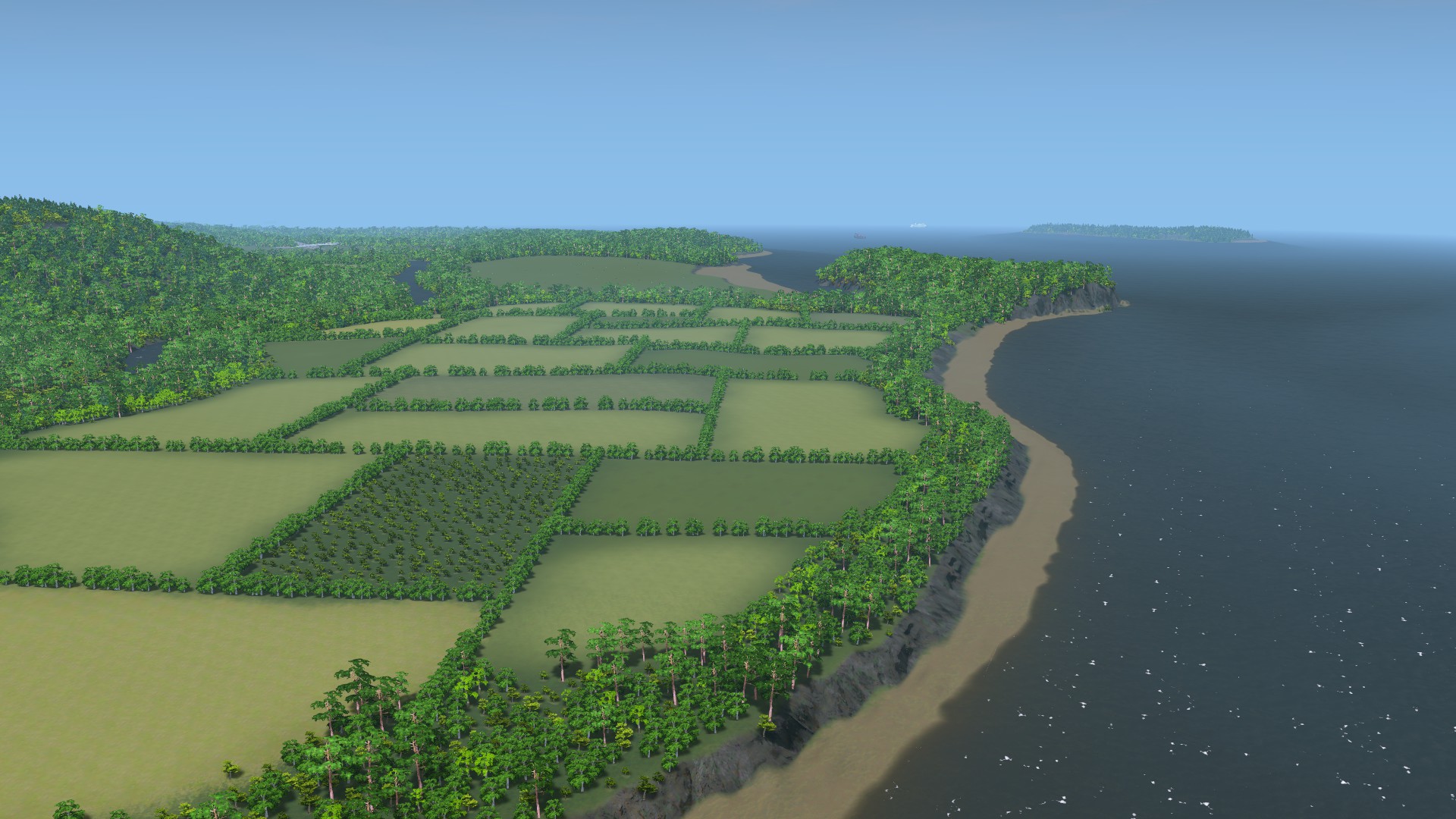 There is just one highway and one railway. I’ve intentionally tried to keep it as simple as possible, leaving the main infrastructure design up to the player. I did place an intersection in the starting tile, to make expension of your highway a bit easier. There are shiproutes along the coast, every coastal spot should be able to connect to these routes. The river has a ship connection at the bay, up to the small sandy bay.