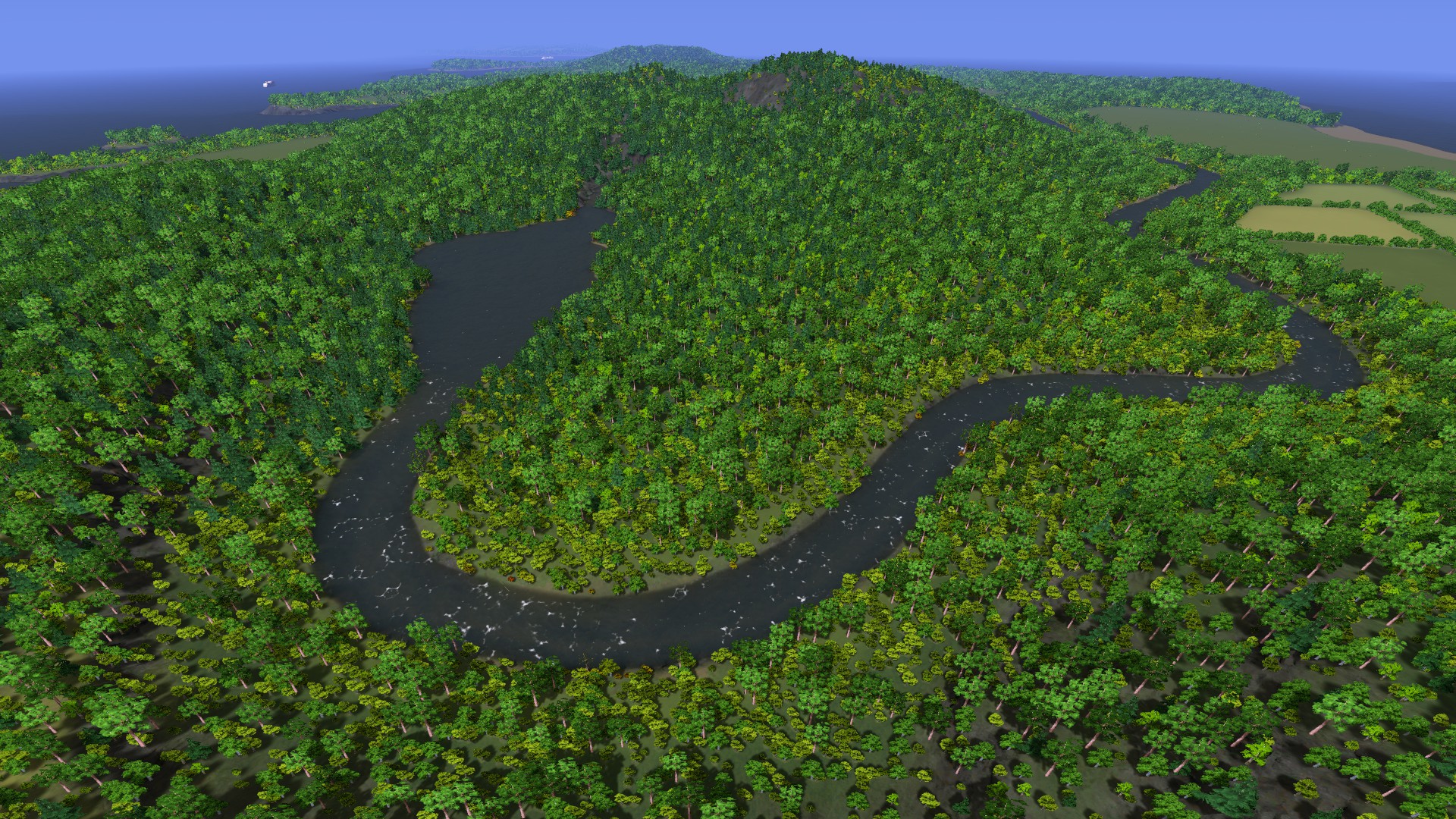 The river on the island moves very slow. It can handle one or two sewage pumps, but I strongly suggest to place them on the coast or at the small lake. If you place a water pump at small part of the river, eventually the sea will flow into the bay. Keep this in mind with regards to pollution flowing upstream. The mountain lake is an excellent spot for water pumps, as to prevent polluted water.