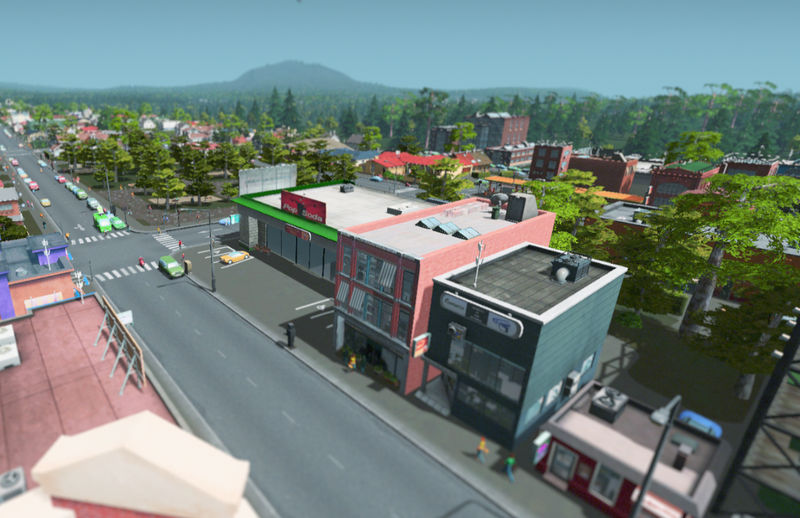 American small commercial building – Low density – Lvl 2 1×3 or 1×4 (with a small garden).