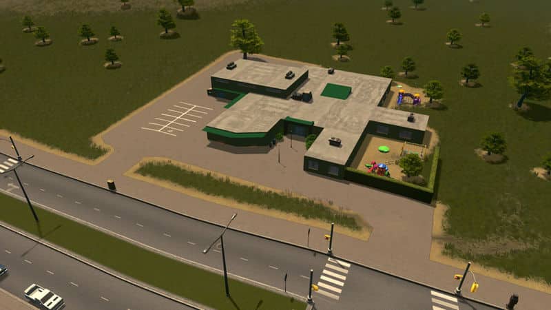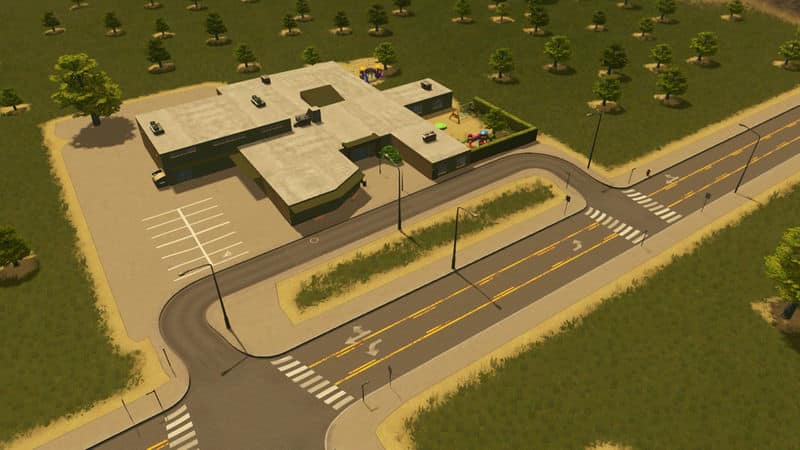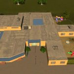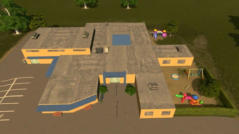 American Elementary School for 400 students. Other stats same as default school. Campus has two playgrounds, gym, driveway, and covered waiting areas for the children.