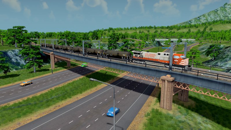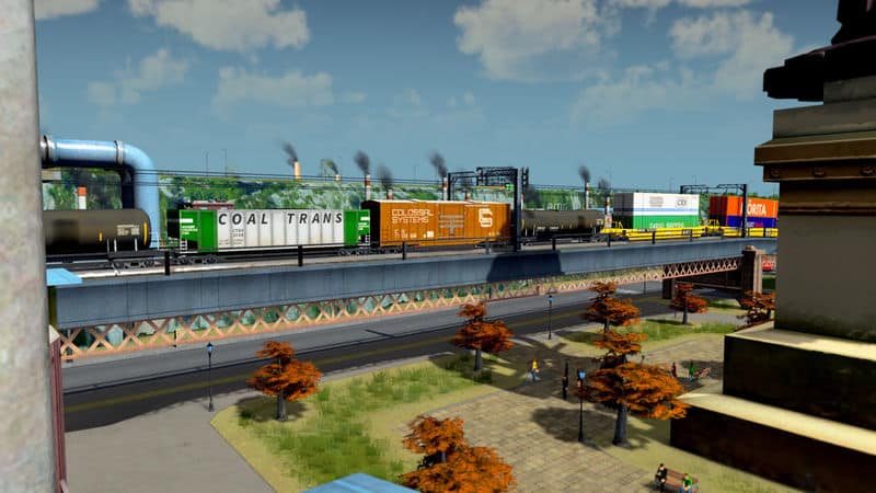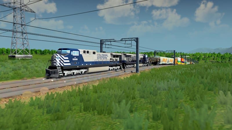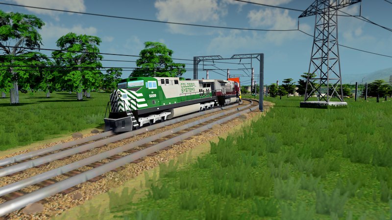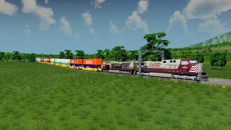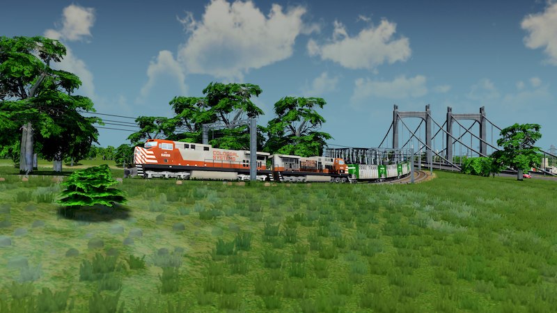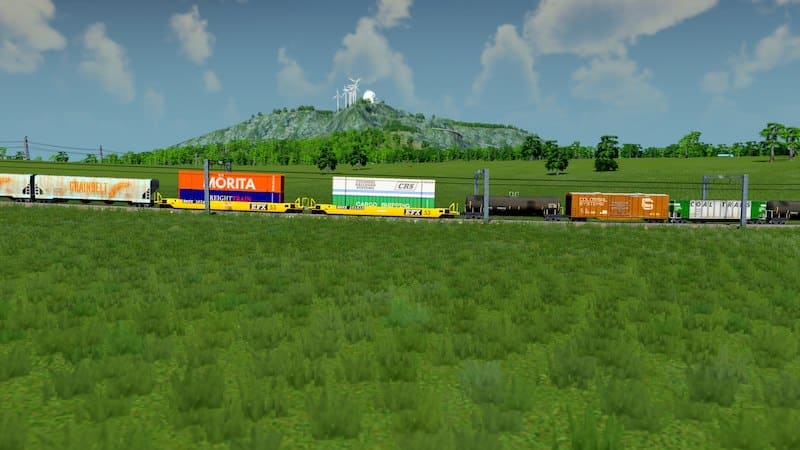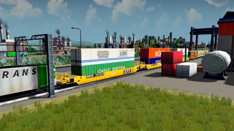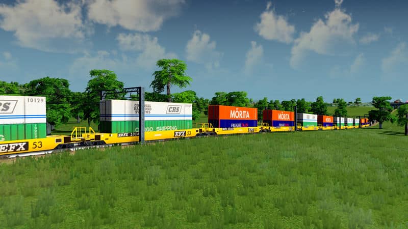 A modern American freight train for your city! Includes multiple custom freight cars, and is set up to feature automatic coloring, realistic speeds and tilt levels, and more! This 15 car train is roughly double the length of trains in the stock game, so some visual glitches may occur at stations, but the more realistic length looks better everywhere else.