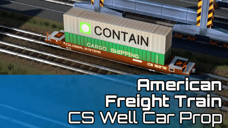 A prop version of the well car from my American Freight Train. Features CONTAIN and Cargo Shipping containers.