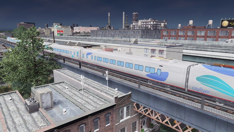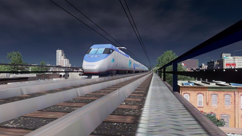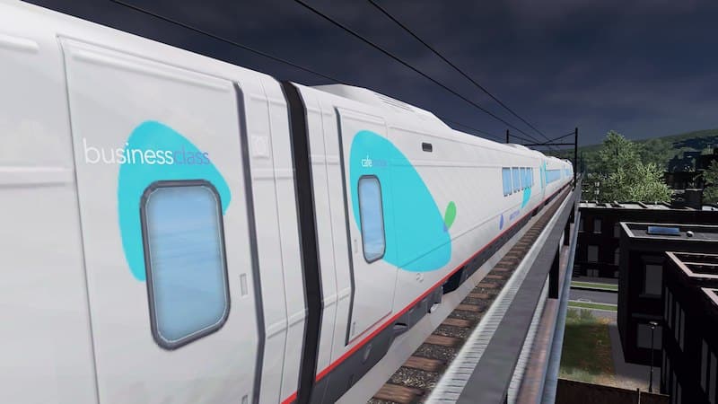 With a top speed of 145 miles per hour, and an average speed of barely half that, the Citylink Cityflyer is an attempt to modernize the Citylink Northeast Corridor. Perfect for regions of dense cities and highly populated areas, the Cityflyer is a comfortable and convenient alternative to shuttle flights. Inspired by Amtrak’s Acela Express trains, this is a full high-speed trainset made up of 2 power cars, a first class car, a cafe car, and 3 business class cars (one with the prototypical single vestibule). It is fully After Dark compatible, and painted in a heavily Amtrak inspired (though somewhat different) livery! Enjoy!