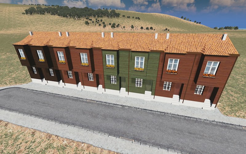 The first house of a new series. Fully wooden “ahşap” row house. Not many of these survive due to obvious reasons but nothing beats waking up in a wooden house.. unless it’s winter. Comes with some color variations, nothing too crazy. Get the chalet props in the required section if you want randomized flowers on the windows, I thought they looked nice.