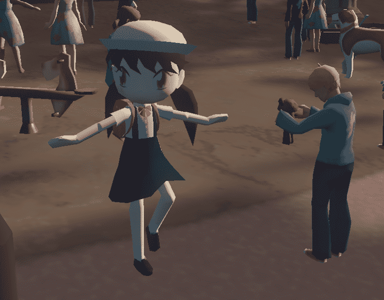 Uses female child animations and behaves like female child.