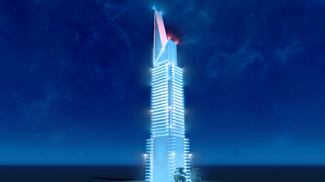 Supertall hotel complex (level-5 unique building) – employs about 750. Complete with LoD model for viewing at a distance.