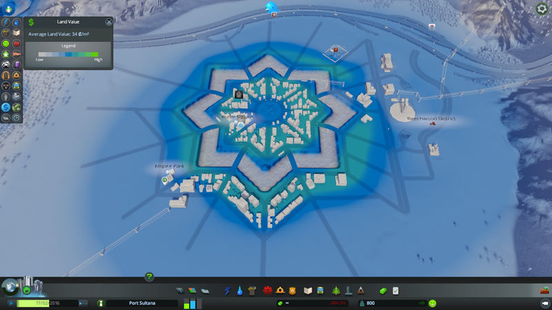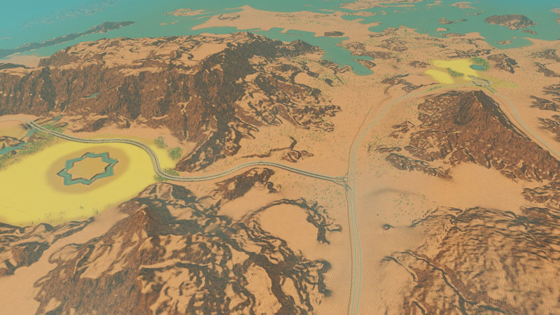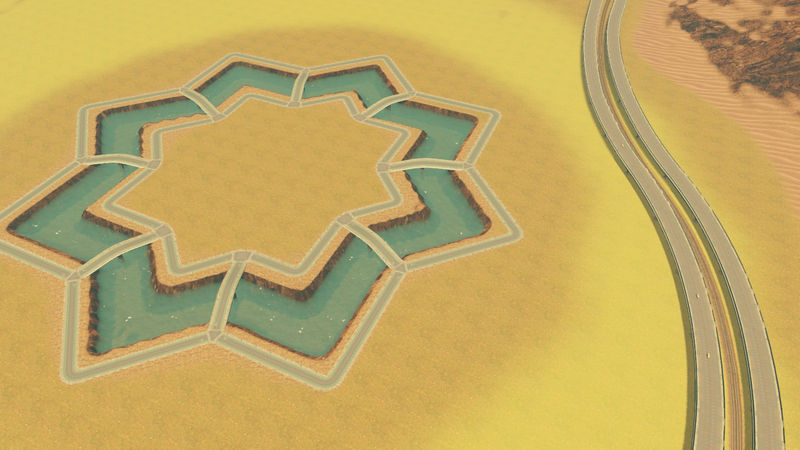 * Arabesque Geometric Design oasis/canal/lake to make a high land-value central tourist district or super tall skyscraper district (includes two water spawns to control water level).