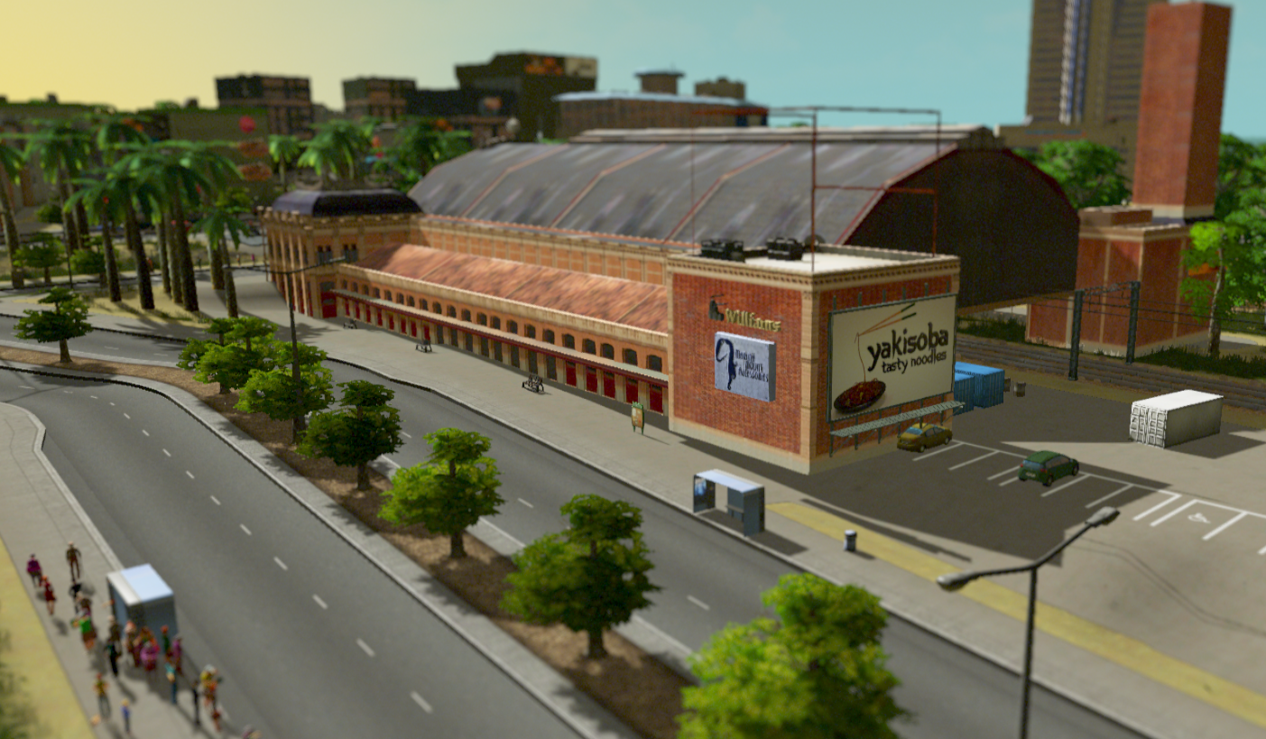Please note that I haven’t found an alternative way yet for the rails not to cross the lot, so I had to place a piece of street across the main façade. The street is fully functional. If you bulldoze it, the rails will come out again and pierce the building.