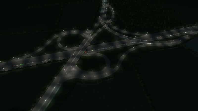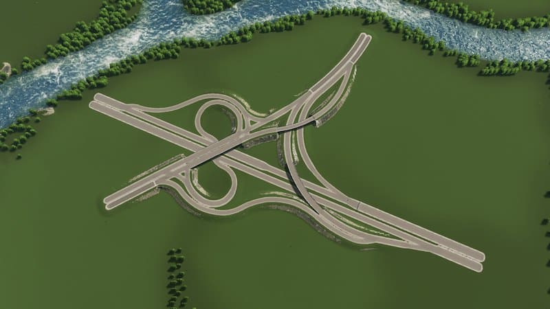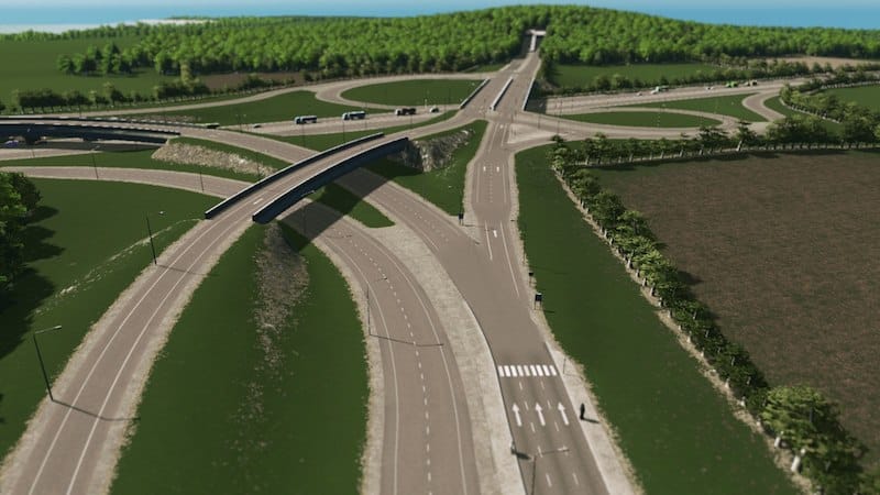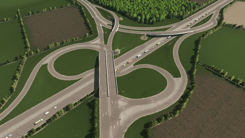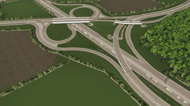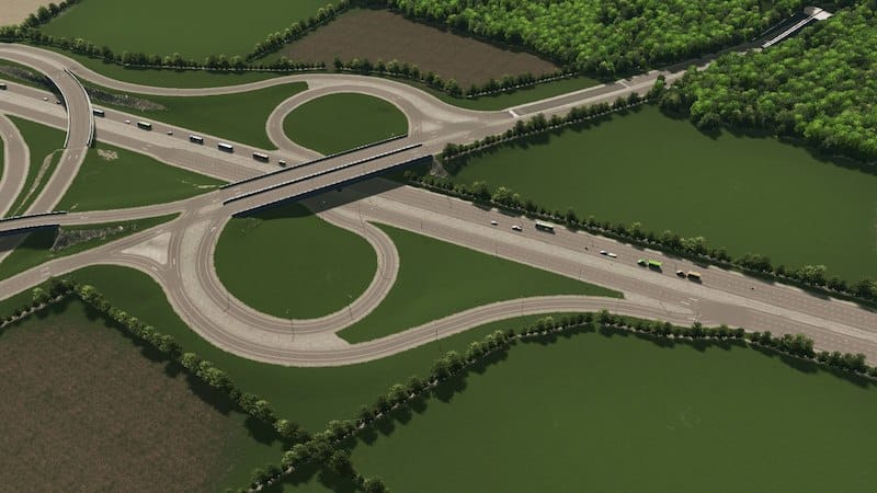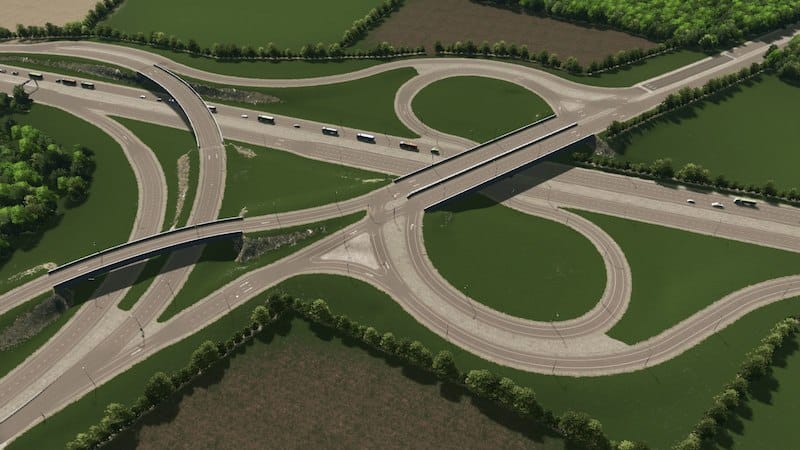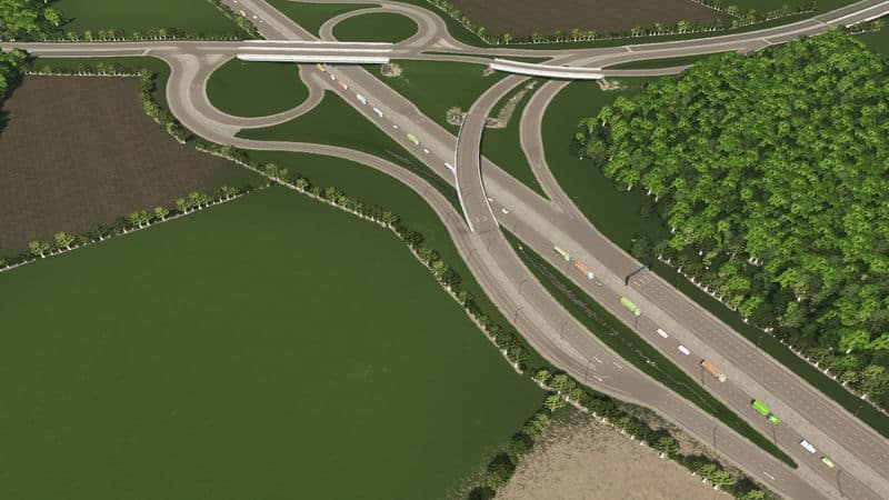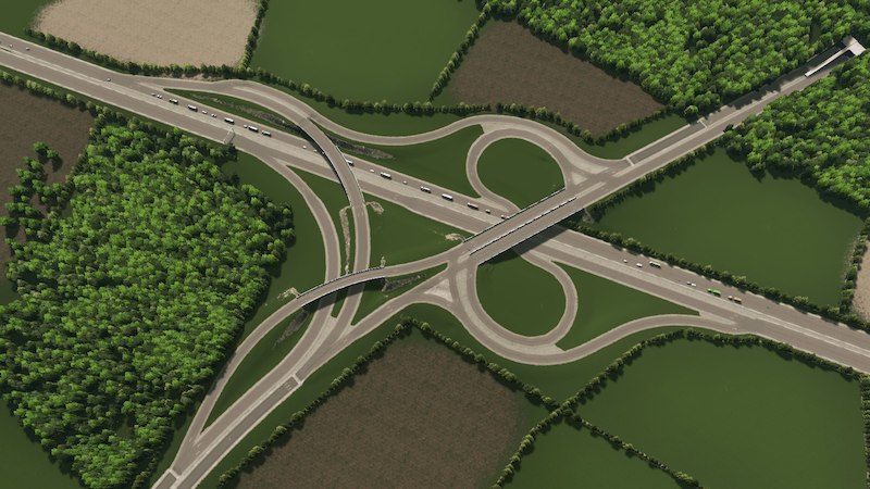 This intersection is suitable for medium-heavy traffic coming off of and going on to the motorway.