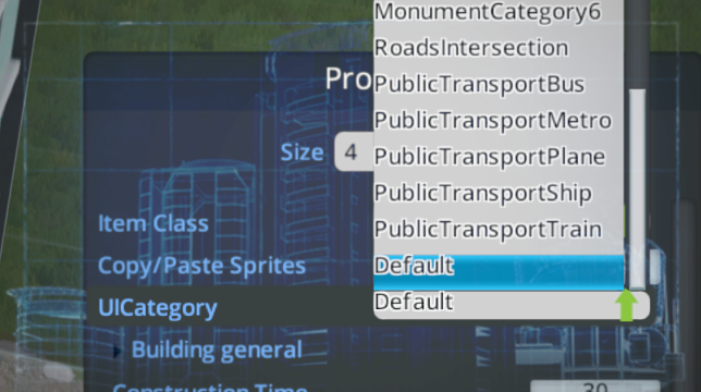 This adds a dropdown box to the Asset Property Editor that allows the reassignment of a given asset’s UICategory.The intended use of this mod is to ease the reassignment of assets into main categories using (mostly) safe known UICategory types.This will allow for custom assets to appear under a monument tab, or a road type tab, irrespective of the primary categorization.