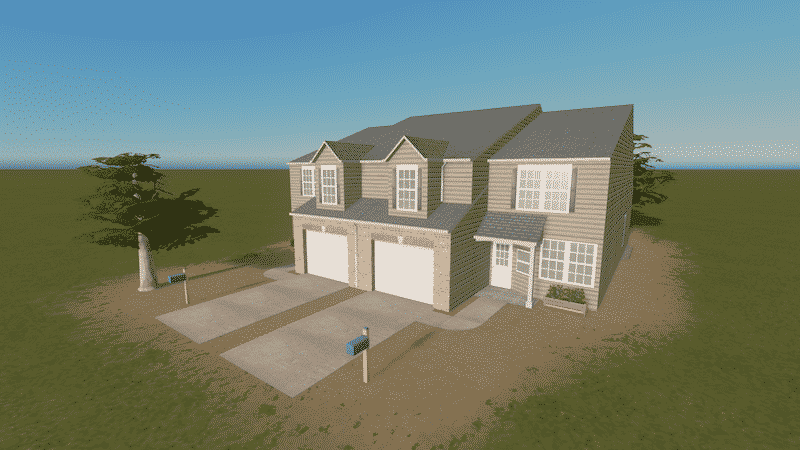 American style semi detached houses based on homes in Atlanta. These are basic homes that will pretty much fit in any type of surroundings.