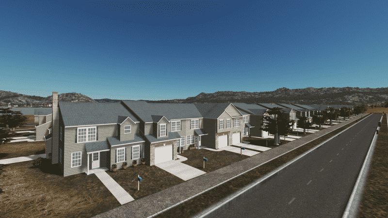 American style semi detached houses based on homes in Atlanta. These are basic homes that will pretty much fit in any type of surroundings.