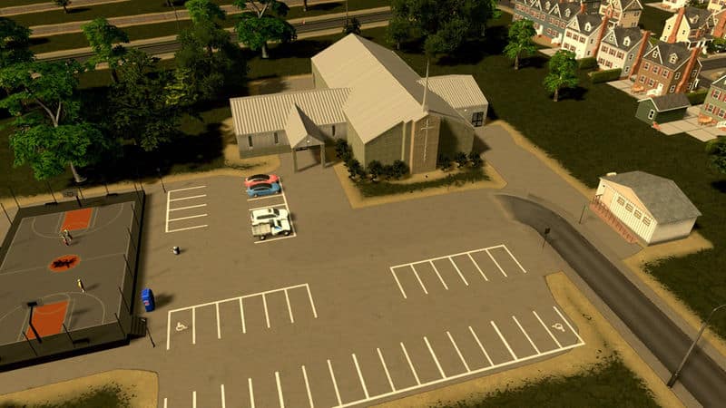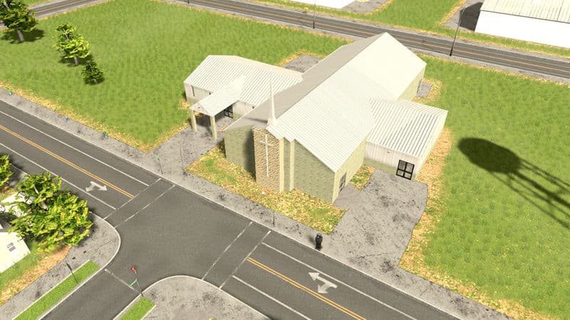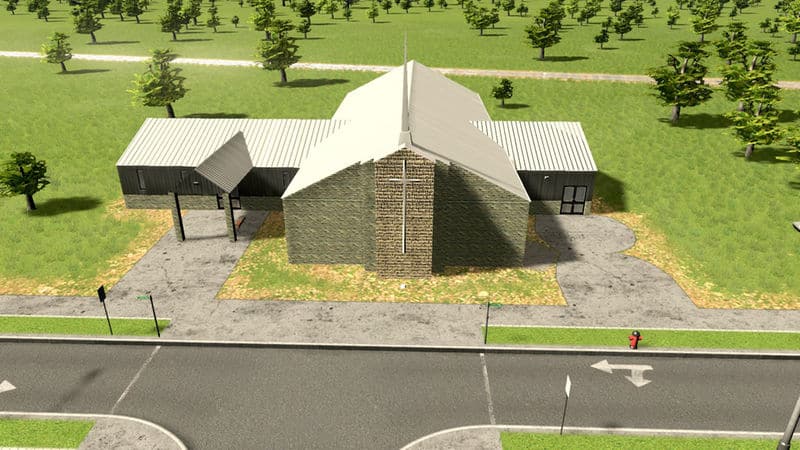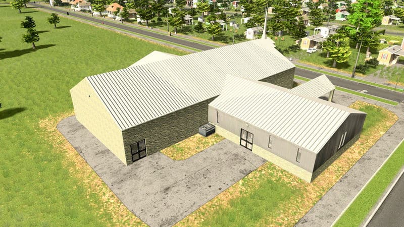 A simple rural or suburban church. Like my other churches this one has a crematorium sub-building to help your death care needs. The crematorium sub-building has the same stats as the default.