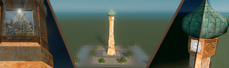 The tower is 6 sided (hexagon) and features 3 clocks as well as 3 old paintings dedicated to battles between the Russian Empire and Prussia in the seven years’ war. (No reason behind it, just wanted them to have a shared subject for the paintings)