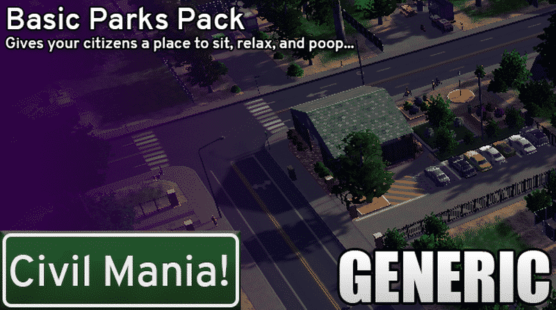 This is essentially a bunch of low end, “basic” parks that are designed to help boost the happiness a little bit and try to give you some means to break up zones. With the exception of the “freebie” 4×4 Family park I threw in, all the basic parks are 2×2 and must be placed on a road or path.