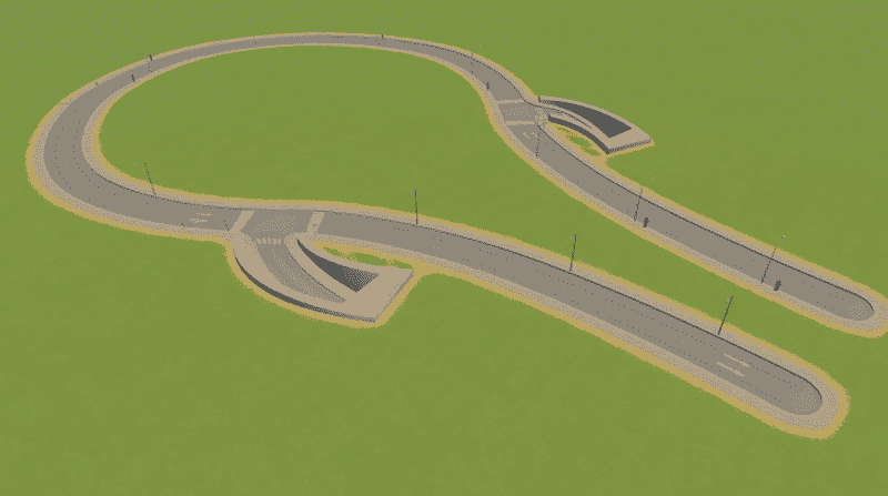 The Roundabout/Entex (enter/exit) solution combines the functionality of a full roundabout and an instant both-way connection to the initial highway connection! This is the perfect solution for early-mid game and also user friendly due to its compact design and dual function, but the connections can sometimes be hit-and-miss.