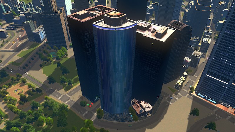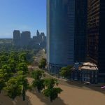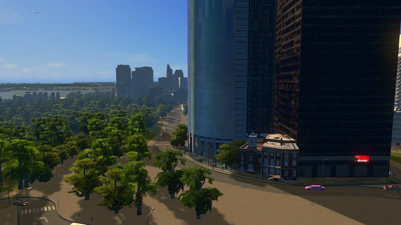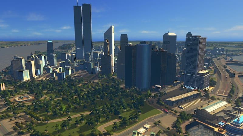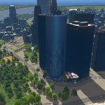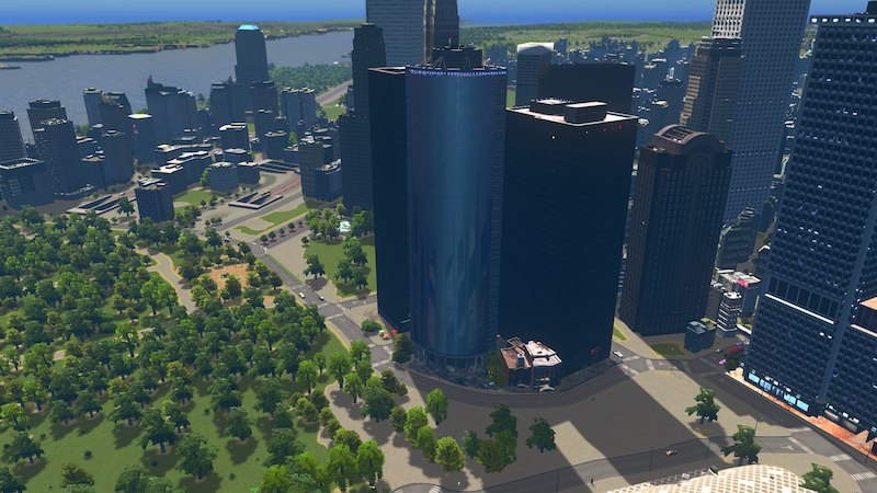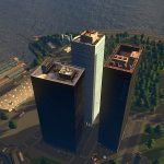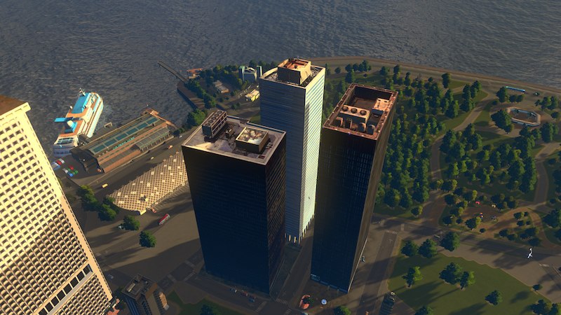 Place a main road where you want the rear of the building to be, so the front faces towards your Battery Park.