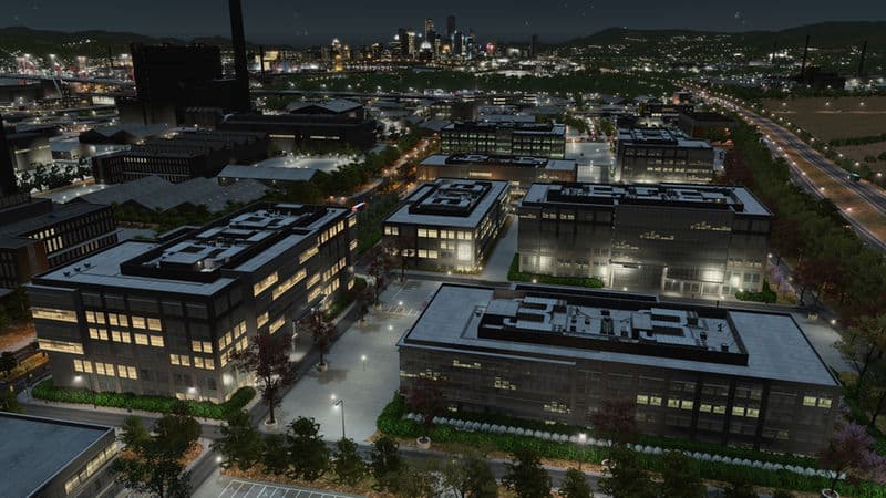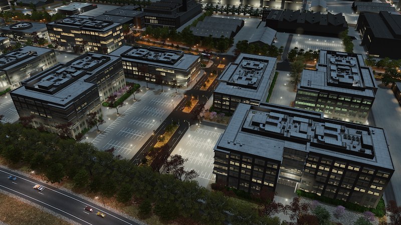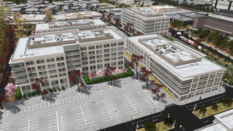 TIP: Place this with Ploppable RICO multiple times in different orientations along with BB Offices 3A/B/D, and in planned areas with ample parking and custom trees and props, to create realistic working office parks!