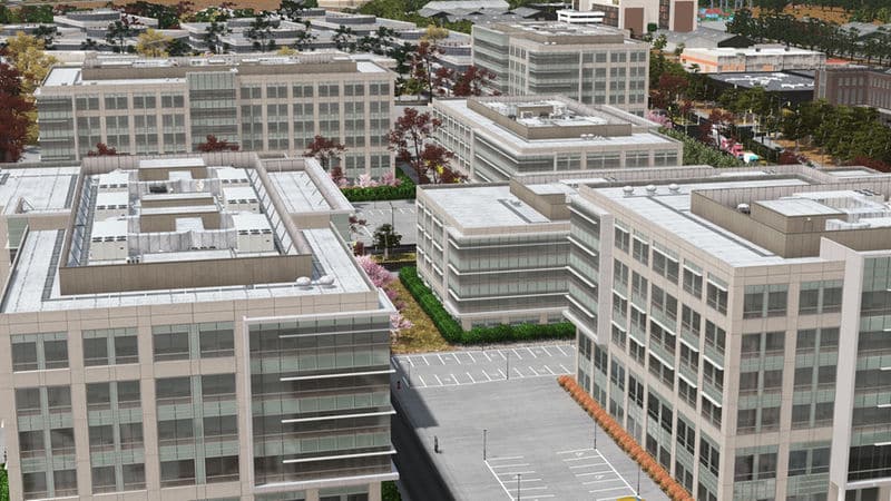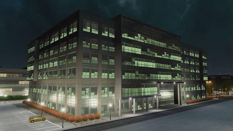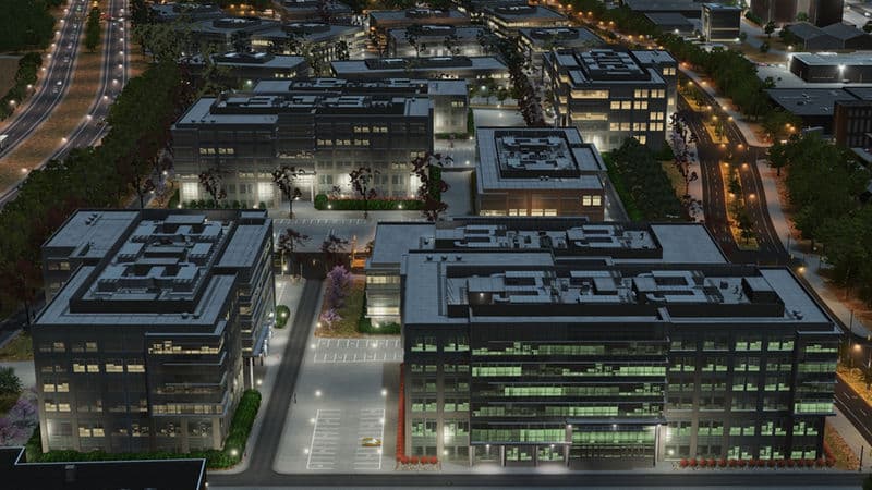 TIP: Place this with Ploppable RICO multiple times in different orientations along with BB Offices 3A/B/C, and in planned areas with ample parking and custom trees and props, to create realistic working office parks!