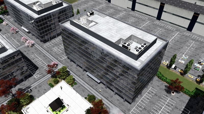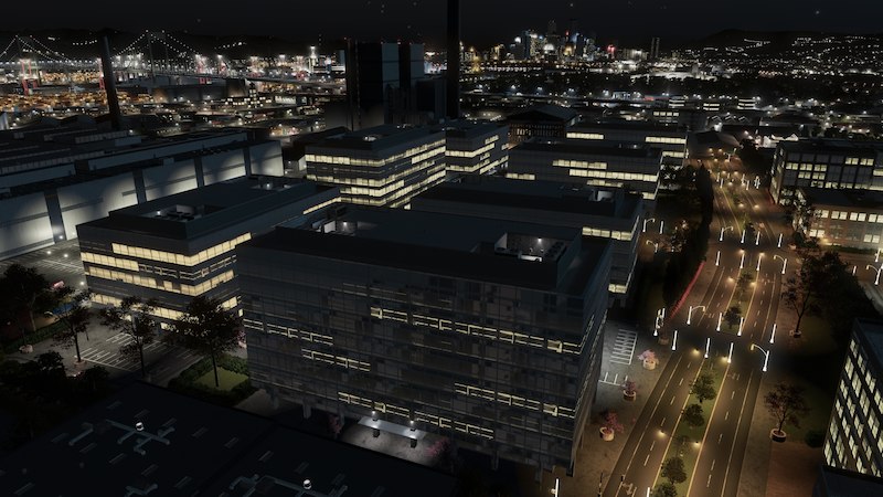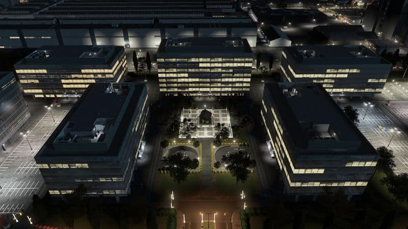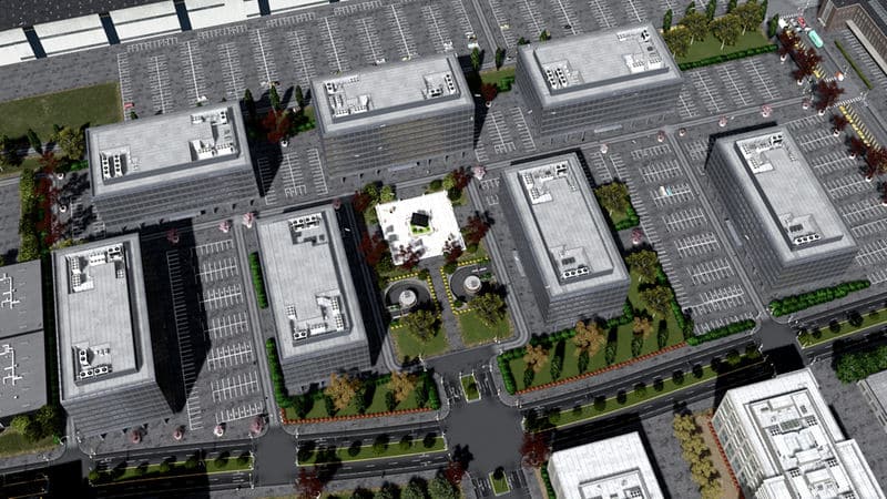 TIP: Place this with Ploppable RICO multiple times in different orientations along with BB Offices 4B/C, and in planned areas with ample parking and custom trees and props, to create realistic working office parks!