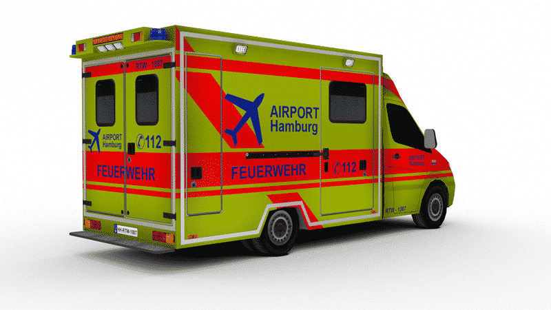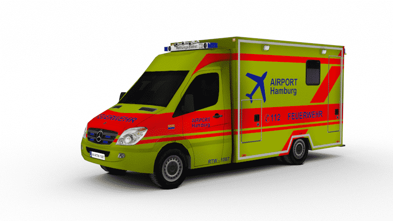 Relative realistic creation of the ambulance vehicle of the Hamburg Airport.
