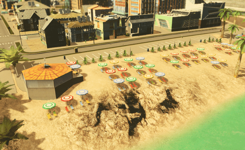 A simple 4 x 4 beach for smooth, sandy coasts. Looks OK with any map theme / biome = no palm trees that change into something weird with other than tropical theme. No mods needed, one custom prop is required (optional).