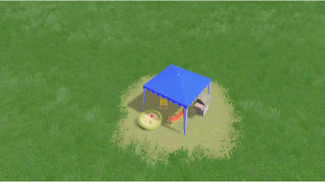Model consists of a Small Tent a grill and a playground. Ploppable anywhere, rotateable with custom icon ingame and proper LODs. Make sure to download the collection for extra variety:
