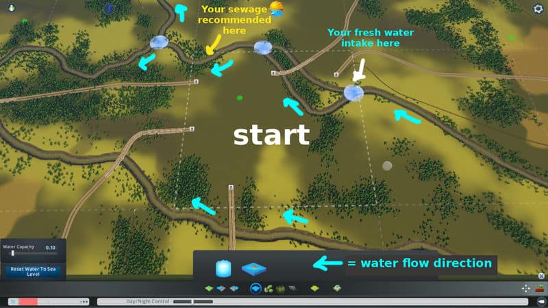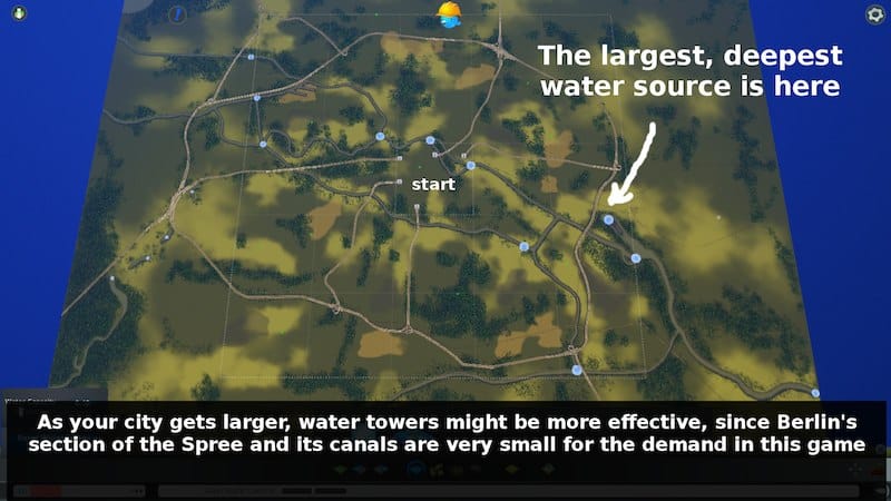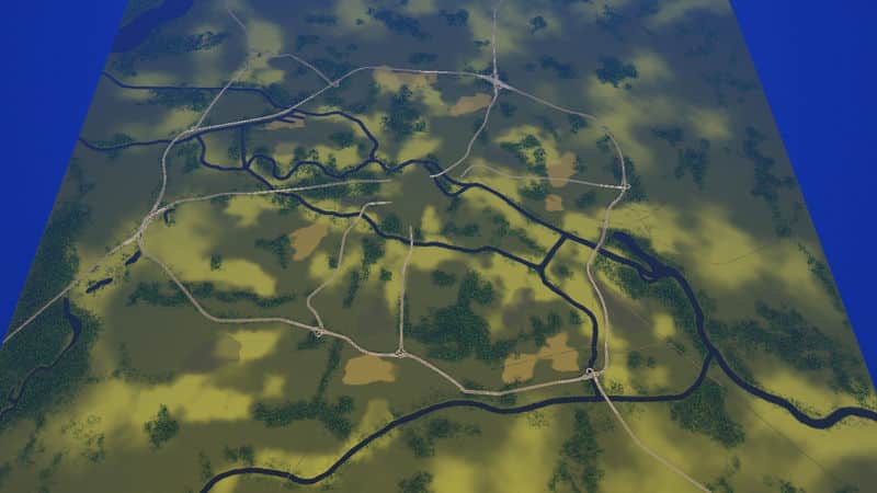 Highways / Roads explanation and tips: Only highways can be used in map creator. There are several stretches of highway in here that are large avenues in real life. Convert them if you wish. The more extensive highways I placed ensure a much better performance in terms of tkeeping most of the regional raffic to the outer ring. You will notice that it will take some time for cars to reach you at the start, and that the traffic going by your city will be much lower! That’s what the ring system and multiple incoming highway points to your start square.