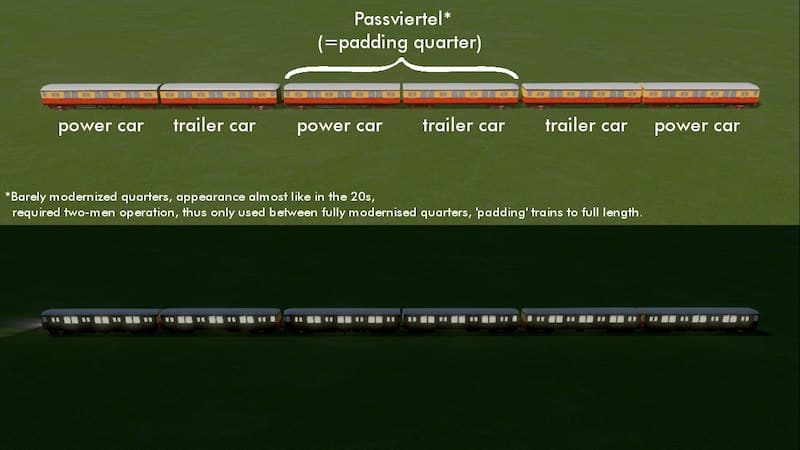 - a non-modernised “Passviertel” (with trailer car) in the train’s middle