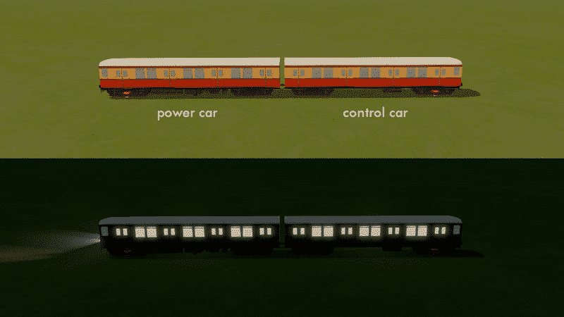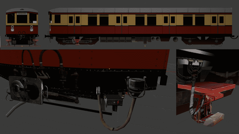 The asset resembles a late version of the “Stadtbahn” type featuring separated East-DR-style lights, line color coding and a re-converted control car allowing for stand-alone operation of a two car quarter train.