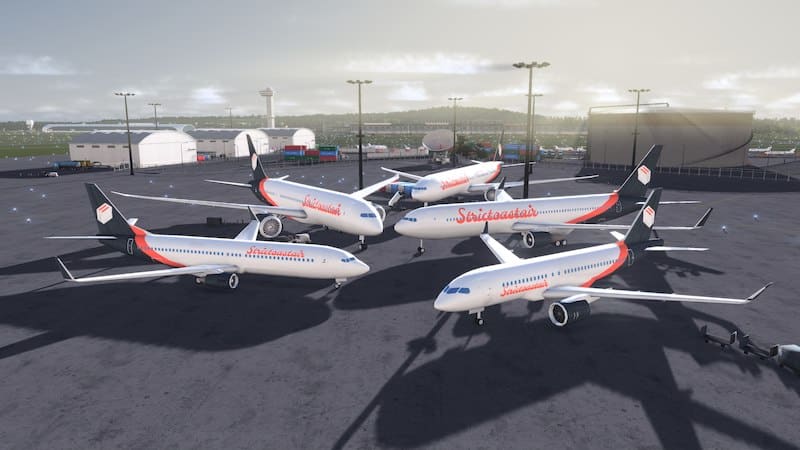 This pack includes a wide variety of jets to add some well-designed charm to your airports. This pack includes 5 different plane types decorated in the eye-catching Strictoastair livery. Each plane has a custom LOD to ensure accuracy at all distances. Every plane is accurate to real world measurements, and while they are based on particular aircraft (CS100, 737-800, 767-300, 777-300ER, 787-8), some small liberties have been taken.