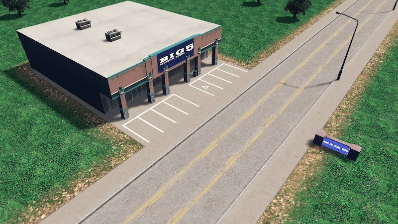 Includes sign prop. Found in the Billboards tab when using More Beautification mod. If you have a search mod just search “Riverpark.”