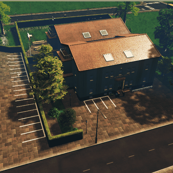 A bigger school with a larger student capacity. Also, this building includes a playground and a bigger parking. Ideal for big cities.