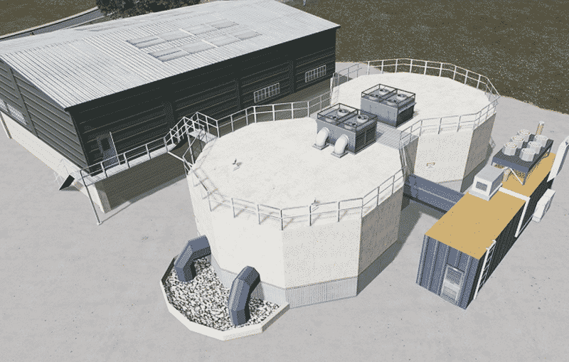The main building for the biogas plant containing the generator. Burns the methane accumulated from waste into electricity. Although this building is what actually produces all the energy I made the digester higher so you need to collect garbage for it to work better so make sure you grab that to complete the plant. Lights on subs didn’t work so I had to separate.