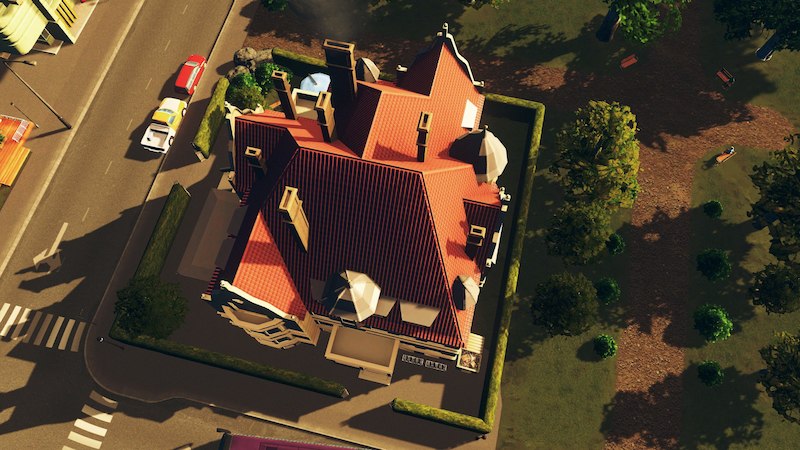 Model comes with standard props. Street alignment is on balcony side and second entrance to the left. Looks best placed on a corner street.