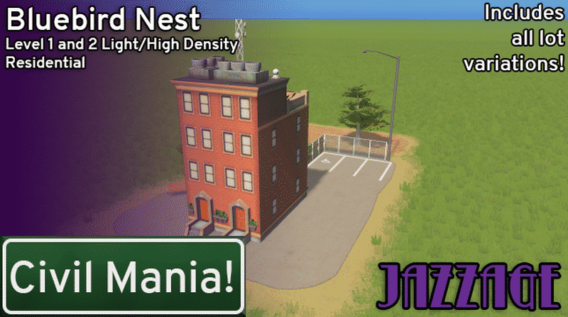 You’ll probably notice that this a massive workshop item; in it, you’ll find five files for both levels (that’s 10 lots all together) that allow you to use this structure as a sort of “mid-density” option for some areas along with having some small buildings for high-density zones. Given the nature of the game’s zone system, I couldn’t just have these buildings be small lots to create that “cramped brownstone” like you’d see in real cities, so there’s going to be gaps between your apartments when you use these buildings.