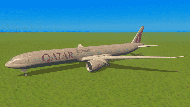 The “Qatar” logo on the right side of the aircraft is clipped and looks like “Oatar”, unfortunately I can’t do anything about it. This asset was made using vasimr22‘s fantastic Boeing 777 template which can be found here.
