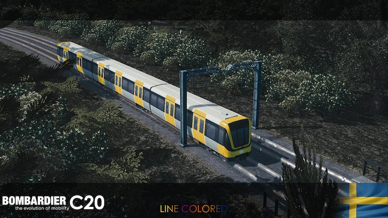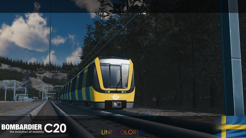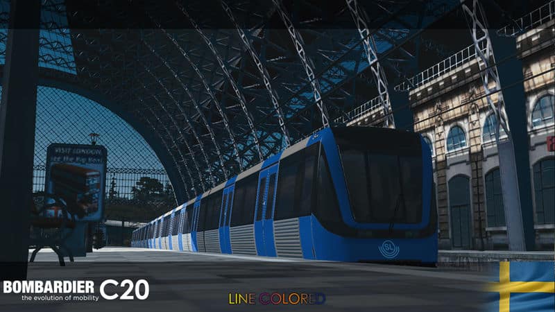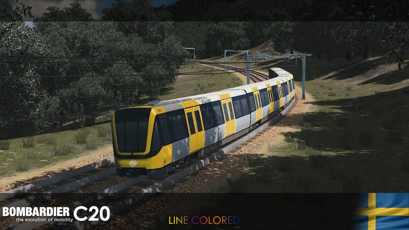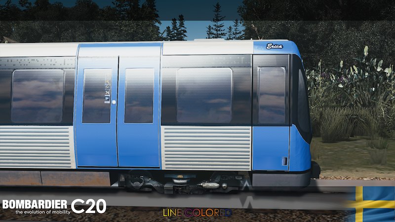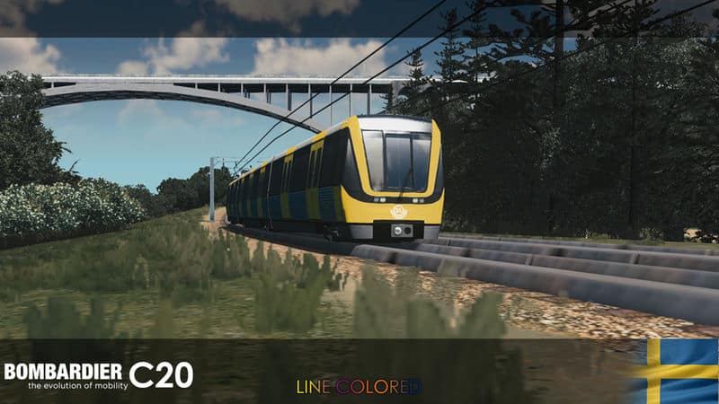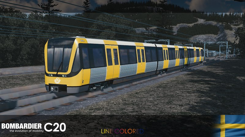 The Bombardier C20 is a type of subway train used in the Stockholm Metro, Sweden. The C20 is a completely new design and therefore is not compatible with other train types in the system. To save cost and weight, each unit has only four bogies. The middle car has two bogies. The end parts consist of one bogie each and are connected to the central portion via a semi-trailer-direction.