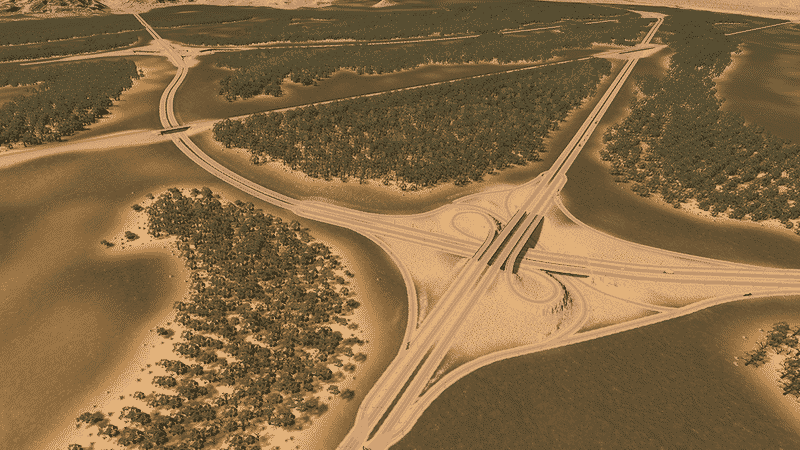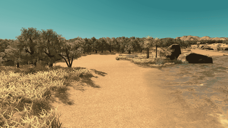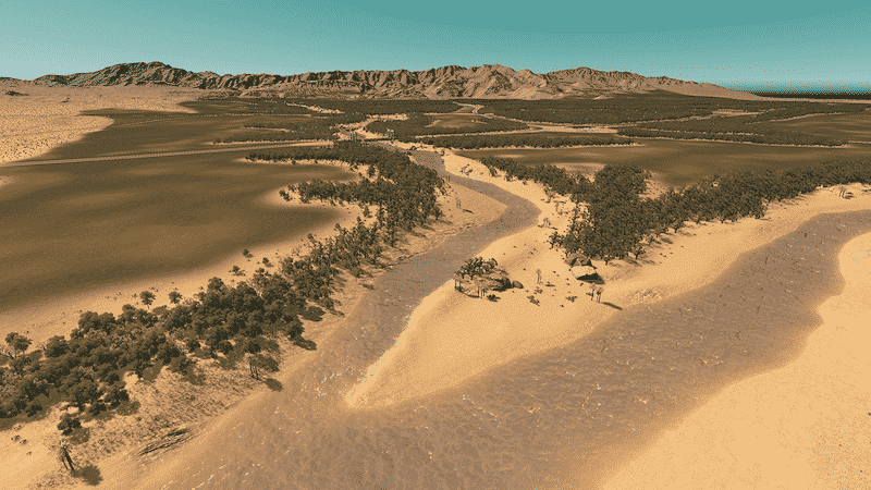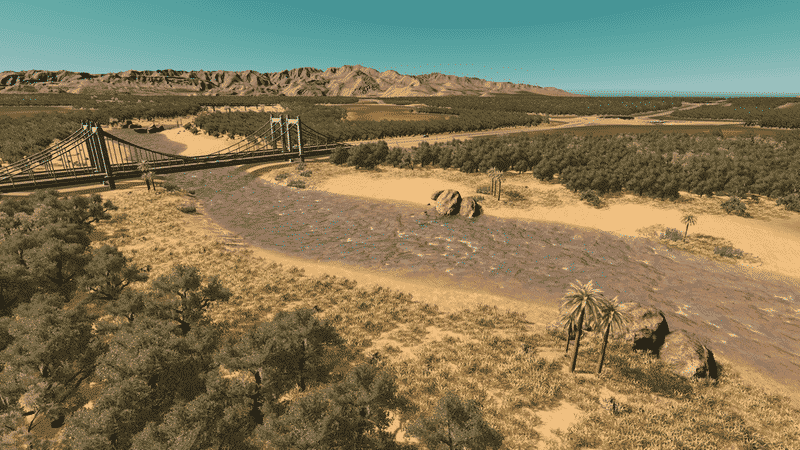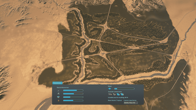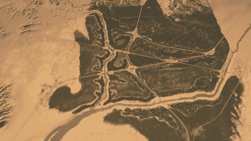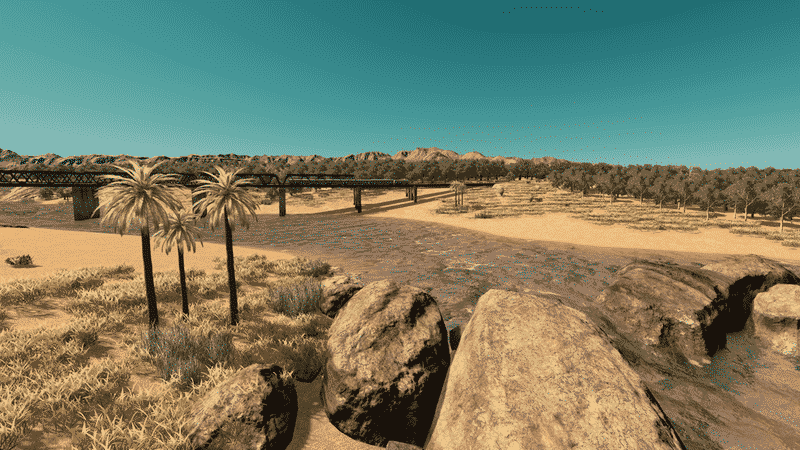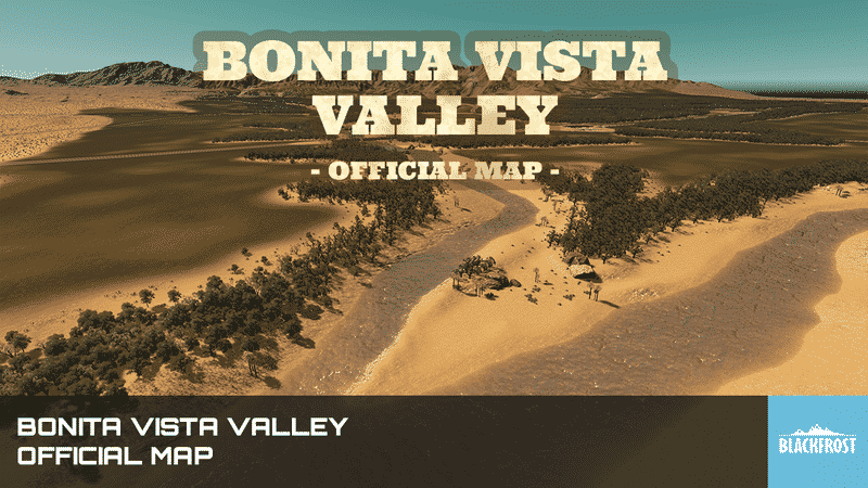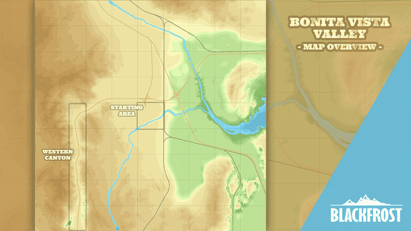 Between two rivers lays Bonita Vista Valley – a green tropical paradise right in the middle of a vast desert. The area has no specific role model. The map design is highly inspired by locations in the south United States – mainly southern California, Arizona and Nevada.
