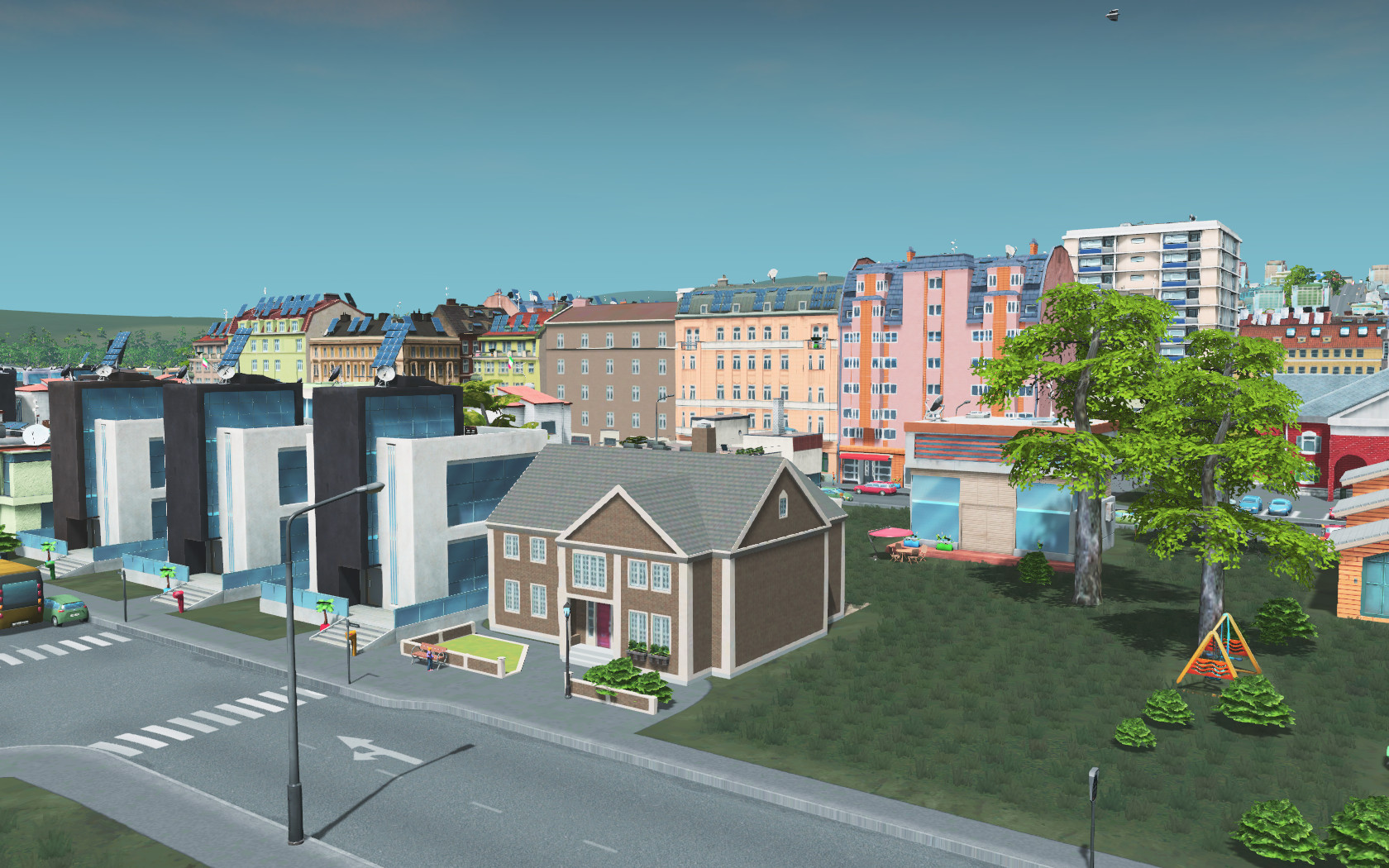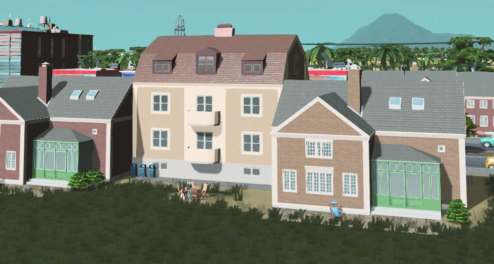 As my generous sprinkling of services was making every corner of my city eventually feature the same level 5 skyline, I decided it was time to learn 3D modelling. The result are in: three classically styled buildings for your VIP Cims. The first one is a level 5, low density residential brick house. Intended for terraces but works equally well as a detached house. Grows on 2×3 and 2×4 lots.